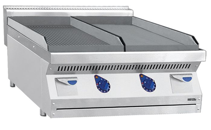 802x750x470мм, Аппарат контактной обработки АКО-80/2Н-Ч-00, чугунная поверхность 2x395x650 мм, 1 гладкая - 1 рифленая, 700 серия, 802х750х470 мм, 9 кВт, 400 В, настольный, вся нерж.