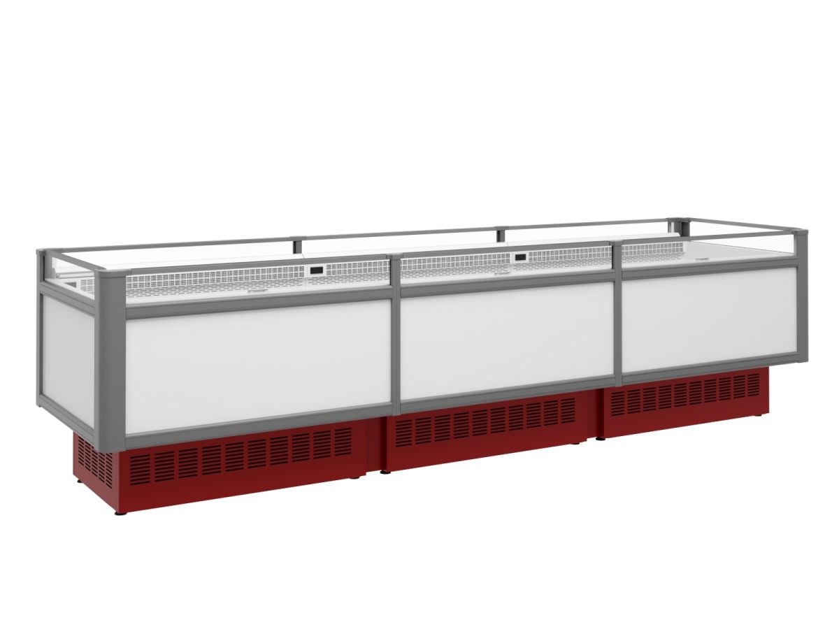 3744х1015х995, t режим -18 C.Бонета,со встроенным агрегатом, полезный объем выкладки— 0,6 м3,охлаждаемая площадь поддонов для выкладки продуктов 2,92 м2, динамическое охлаждение, оттайка ТЭН, потр. эл.энергии в сутки —56,8 кВт, , цвет корпуса —белый, щиток — красный, 14,4Вт, 220В.