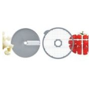 комплект 28115W: диск 28133W + решетка 28122, Устанавливается в рабочий отсек овощерезки на вал двигателя, используется для моделей CL50, CL50 Ultra, CL50 Gourmet, CL52, CL55, CL60, CL60 V.V., R502, R502 V.V., R752, R752 V.V., изготовлен из алюминия с покрытием Mineral+ . Используется для нарезки картофеля, кабачков, репы, картофеля фри, дыни, арбуза на кубики размером 25х25х25 мм.