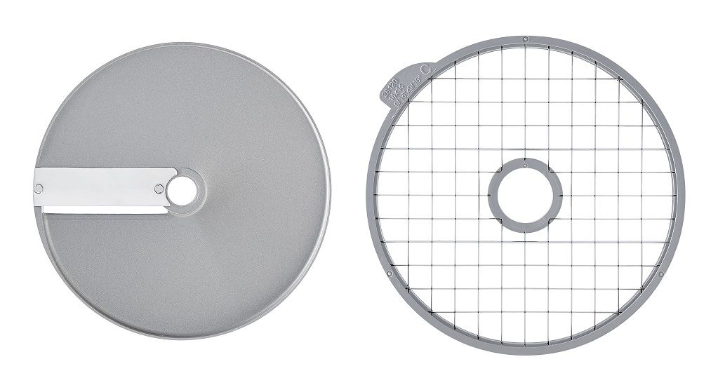 комплект 28179W: диск 28130W + решетка 28120, Устанавливается в рабочий отсек овощерезки на вал двигателя, используется для моделей CL50, CL50 Ultra, CL50 Gourmet, CL52, CL55, CL60, CL60 V.V., R502, R502 V.V., R752, R752 V.V., изготовлен из алюминия с покрытием Mineral+. Используется для нарезки картофеля, моркови, кабачков, свеклы, сельдерея на кубики размером 14х14х10 мм.