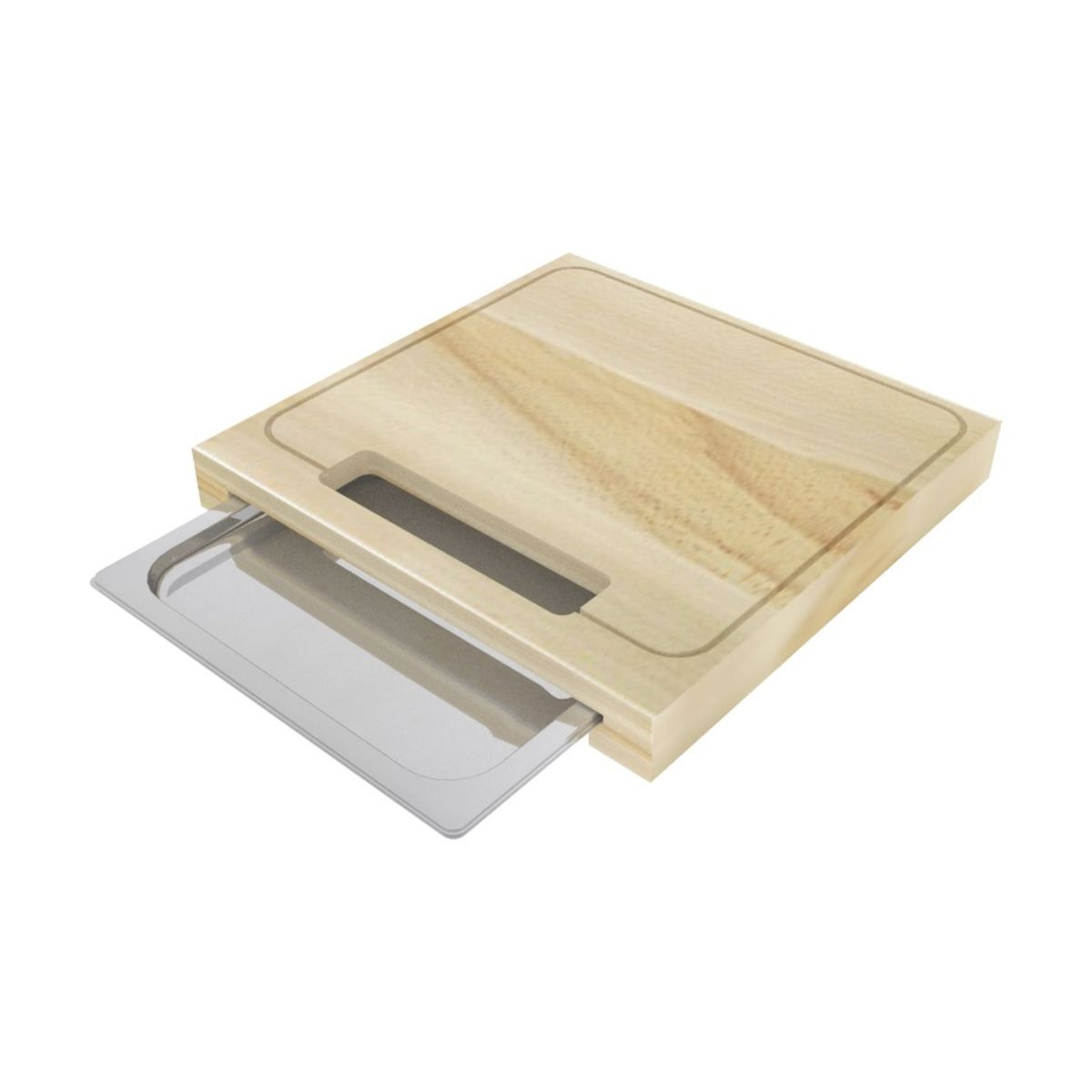 400x300x50мм, бук натуральный, отверстие для сброса отходов и сбора жидкости, в комплекте гастроемкость GN-1/2х20
