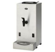 355x355x515 мм без ручек, с ручками d 446 мм, 3,2 кВт, 220В, настольный, подключение к водопроводу, с встроенным указателем уровня воды, высококачественная нержавеющая сталь CrNi 18-9, с двойными стенками для дополнительной надёжности; ёмкость 20 л, за один раз проливает 18 л, производительность в час: 240 чашек, 30 литров; время нагрева за 34 мин. с 20 до 97 C, регулируемая температура от 0 до +97C, защита от работы в сухую