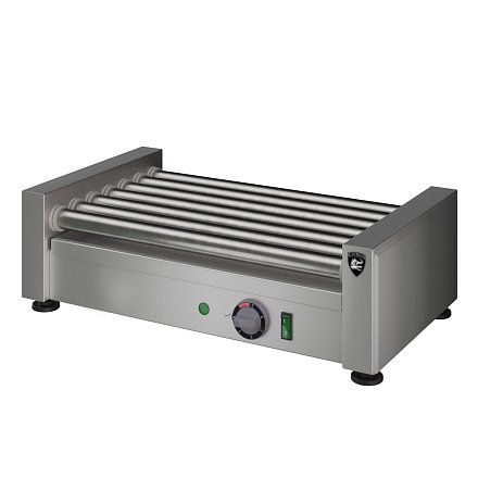 Заказ от 5шт. 536х320х170мм, 1,05 кВт, 220В, ролики из нержавеющей стали 7шт., длина ролика 450мм, кол-во одновременно приготавливаемых сосисок 5-15шт., время приготовления при полной загрузке около 8-14мин, время разогрева роликов до максимальной температуры 10 мин. Скорость вращения роликов 2 об/мин. Под роликами установлен поддон для сбора жира. Масса 10кг.