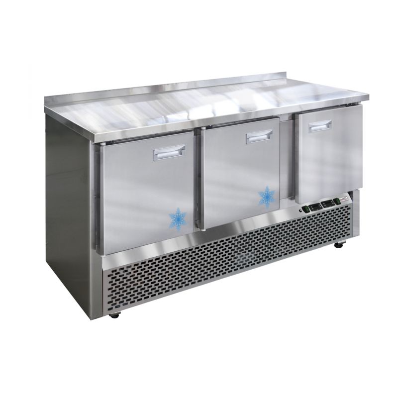 Комбинированные холодильные столы призваны в рамках ограниченного пространства кухни уместить холодильный и морозильный объём для хранения полуфабрикатов и заготовок. Конструкция комбинированного холодильного стола включает две рабочие камеры с независимым управлением для хранения продуктов. Одна создает температуру от -2◦С до +8◦С. Вторая – -10…-18◦С. На передней панели отделения для холодильного агрегата предусмотрена перфорация. Благодаря этому воздух свободно может циркулировать, что обеспечивает эффективное охлаждение компрессора. Двери оборудуются доводчиками. Технические характеристики: Температурный режим: камера 1: -2...+8,°С, камера 2: -10...-18°С Компрессор Aspera, Electrolux, l'unite hermetique Микропроцессорный блок управления Динамическое охлаждение Напряжение питания: 220В/50Гц Автоматическая оттаика испарителя Столы выполнены полностью из нержавеющей стали Цельнозаливной корпус Повышенная прочность столешницы холодильного стола