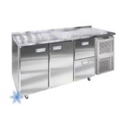 Низкотемпературный холодильный стол (НХС) предназначен для хранения предварительно замороженных пищевых продуктов при температуре от -10 до -18 °С. Столы могут применяться на предприятиях общественного питания, торговли и пищевых производствах. Низкотемпературный холодильный стол выполнен из высококачественной пищевой нержавеющей стали. Передняя панель агрегатно отсека имеет большую площадь перфорации, что позволяет обеспечить холодильному агрегату поступление воздуха для охлаждения. Технические характеристики: Температурный режим -10-18°С Компрессор Aspera, Electrolux, l'unite hermetique Микропроцессорный блок управления Динамическое охлаждение Напряжение питания: 220В/50Гц Автоматическая оттайка испарителя Столы выполнены полностью из нержавеющей стали Цельнозаливной корпус Повышенная прочность столешницы холодильного стола