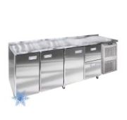Холодильный стол выполнен из высококачественной пищевой нержавеющей стали. Столы могут производиться (выпускаться) с распашными дверями (ящиками), которые имеют надежные петли (для ящиков направляющие) с опцией доводчиков, что обеспечивает гарантированное закрытие и поддержание заданной температуры в рабочем объеме стола. Используется электрический блок управления с функцией автоматической оттайки. Передняя панель моторного отсека имеет большую площадь перфорации, что позволяет обеспечить холодильному агрегату поступление воздуха для охлаждения. Технические характеристики: Температурный режим -2+8,°С Микропроцессорный блок управления Компрессор Aspera, ACC, Electrolux, l'unite hermetique Динамическое охлаждение Напряжение питания: 220В/50Гц Автоматическая оттайка испарителя Столы выполнены полностью из нержавеющей стали Цельнозаливной корпус Повышенная прочность столешницы холодильного стола Выдвижные ящики холодильного стола снабжены доводчиками