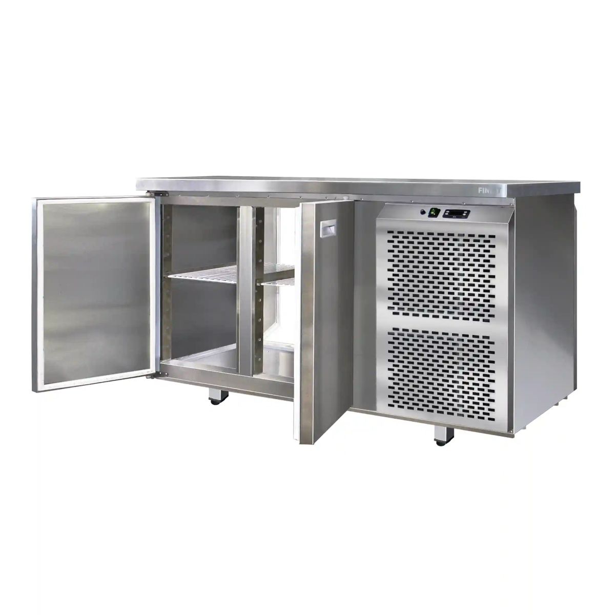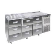 Холодильный стол выполнен из высококачественной пищевой нержавеющей стали. Используется электрический блок управления с функцией автоматической оттайки. Основными преимуществами сквозных холодильных столов являются: -Возможность использования в островном размещении для работы с двух сторон. -Помощь в организации потоков внутри цеха. -Использование как элемент открытой шоу-кухни/бара. Технические характеристики: Температурный режим -2+8,°С Микропроцессорный блок управления Компрессор Aspera, ACC, Electrolux, l'unite hermetique Динамическое охлаждение Напряжение питания: 220В/50Гц Автоматическая оттайка испарителя Столы выполнены полностью из нержавеющей стали Цельнозаливной корпус Повышенная прочность столешницы холодильного стола Выдвижные ящики холодильного стола снабжены доводчиками