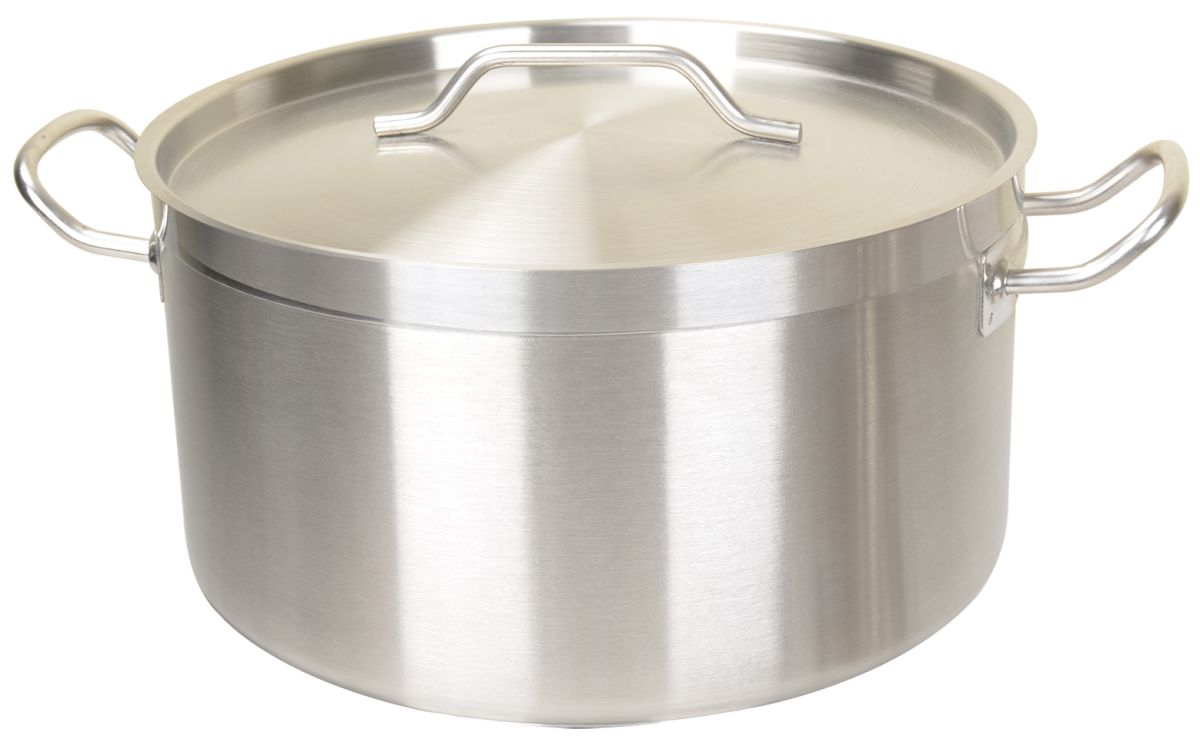 С КРЫШКОЙ; Объем 4,9л; Материал - нержавеющая сталь AISI 201; толщина стенок 0,6мм, толщина дна 3мм; тройное дно (S/S+alu.S/S), подходит для всех типов плит, в том числе для индукционных и газовых.