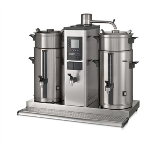 989х570х840 мм, 58 кг, 380 В, 8,38 кВт, Автоматическая кофемашина с заваривающими корзинами (нерж.сталь), КРАН ДЛЯ КИПЯТКА, пр-ть 60 л (480 чаш/час), 2 бака/термоса по 10 л, время заваривания 10л/10мин., объем бака кипятильника 3,3 л, дисплей, программирование дозы, счетчик порций, система очистки, таймер, подключение к воде. Бумажные фильтры - 25 штук в комплекте. В комплекте идут чистящие порошки Bravilor Bonamat cleaner и Bravilor Bonamat renegite.