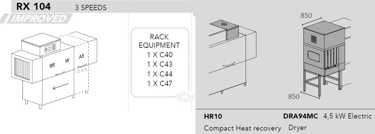 МАШИНА ПОСУДОМОЕЧНАЯ DIHR RX 104 SX+DDE+HR10+DRA94MC