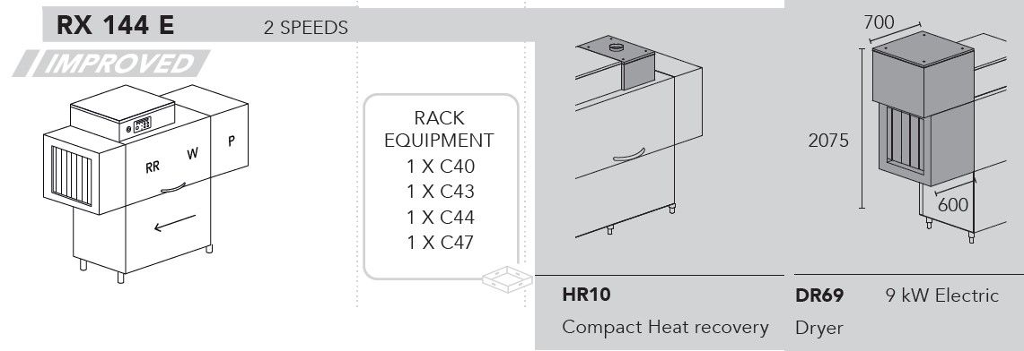 МАШИНА ПОСУДОМОЕЧНАЯ DIHR RX 144 E DX+DDE+HR10+DR69