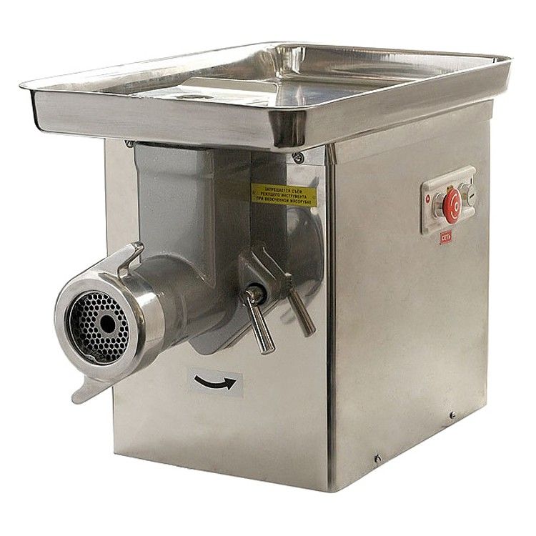 765х450х576мм, 600кг/ч, Мясорубка предназначена для измельчения мяса и рыбы на фарш,повторного измельчения котлетной массы и набивки колбас, производительность до 600 кг/час, 380В, 2,71кВт, вес нетто -56кг, настольное исполнение, комплектация:нож подрезной — 1шт, нож крестовой -2 шт,решетка 5 мм, решетка 9 мм