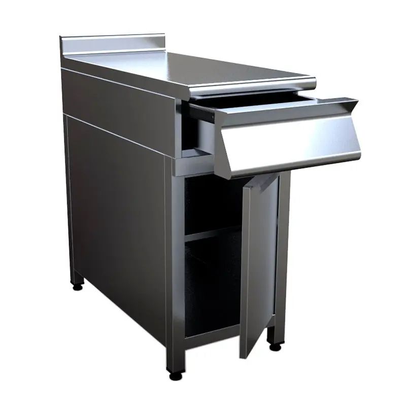 500х900х870мм, Нейтральный модуль шириной 50см закрытый, с выдвижным ящиком, распашная дверка (дверки), корпус из н.с. AISI 430, каркас проф. труба 40х40мм, полка сплошная, регулируемые по высоте ножки, вес 43кг.