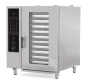 840х800х775 мм, 9,5 кВт, 400В, электронная панель управления, бойлер, 6 уровней, 6хGN-1/1, 300 готовых программ + 200 программ с возможностью записи (9 этапов), вся нерж., без г/емкостей, 3х-канальный щуп, регулировка влажности, вентилятор: реверс + 5 скоростей, автоматическая мойка, душирующее устройствуо, 7 режимов мойки. Температурный режим +30…+270С, диапазон установки таймера от 1мин до 10ч. Подключение к водопроводу и канализации.дверь из тройного закаленного стекла, 6 режимов работы.