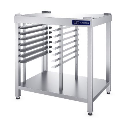 Габариты 840х600х960мм, вместимость GN-1/1 7шт., вместимость противней 600х400мм 7шт., подходит для ПАРОКОНВЕКТОМАТ ЭЛЕКТРИЧЕСКИЙ KAYMAN, материал столешницы, полки и направляющих AISI 304, материал стоек AISI 210. Разборная конструкция. Сплошная столешница позволяет установить любое технологическое оборудование. Стойки выполнены из трубы квадратного сечения 40х40 мм. В нижней части подставки имеется сплошная полка. Углы столешницы заварены и зачищены для обеспечения простоты санитарной обработки и уборки. В верхней части столешницы по углам установлены упоры, предотвращающие случайное падение оборудования во время его эксплуатации. На стойках расположены направляющие для установки гастроемкостей GN 1/1 и/или пекарских противней размером 600х400 мм. Опорные ножки подставки регулируются по высоте для компенсации неровностей пола. Вес 44,5кг.