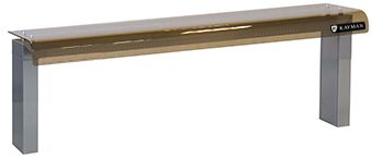 1370х330х527мм. Номинальная мощность подключаемого модуля 14 В. Полка устанавливается на столешницу модуля линии раздачи GUSTO и служит для выкладки тарелок с готовыми блюдами. Конструкция сборная, бескаркасная. Полка выполнена из нержавеющей стали AISI430. В верхней части полки располагается гнутое стекло. Одноярусная полка оснащена одним светильником, освещающим столешницу.