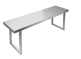 800х250х300мм, Полка настольная для столов со столешницей ЛДСП разборная из нержавеющей стали марки AISI 430 толщиной 0,8мм, с усилителем, 1 ярус. Боковины (стойки) из трубы 20х20 нержавеющей стали марки AISI 430 толщиной 1,2мм. Крепление к столу болтовое через отверстие в столешнице. Полка поставляется в разобранном виде.