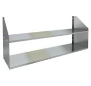 1200х250х300мм, Полка настольная для столов со столешницей ЛДСП разборная из нержавеющей стали марки AISI 304 толщиной 0,8мм, с усилителем, 1 ярус. Боковины (стойки) из трубы 20х20 нержавеющей стали марки AISI 304 толщиной 1,2мм. Крепление к столу болтовое через отверстие в столешнице. Полка поставляется в разобранном виде.