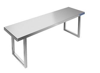 1800х250х300мм, Полка настольная для столов со столешницей ЛДСП разборная из нержавеющей стали марки AISI 304 толщиной 0,8мм, с усилителем, 1 ярус. Боковины (стойки) из трубы 20х20 нержавеющей стали марки AISI 304 толщиной 1,2мм. Крепление к столу болтовое через отверстие в столешнице. Полка поставляется в разобранном виде.