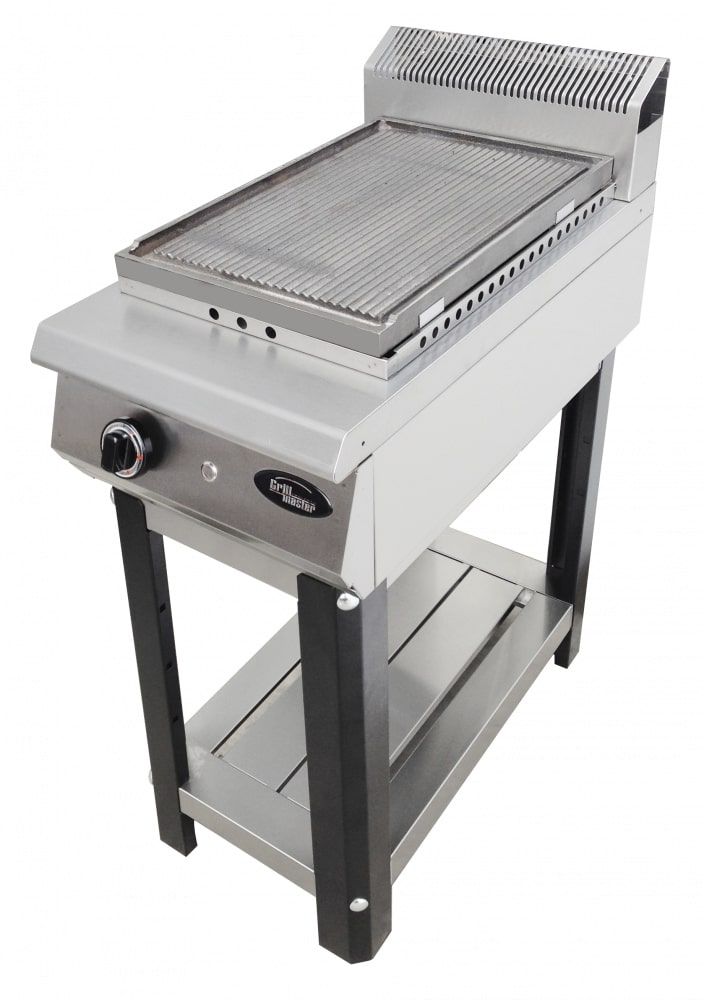 420x800x1050 мм, 1 специальная горелка по всей площади рабочей поверхности, газовая мощность 11,5 kW, чугунная рабочая поверхность, полностью рифленая поверхность, электророзжиг, газ/контроль, поддон для сбора жира, бортик по всему периметру жарочной поверхности. Стенд полностью разборный из нержавеющей стали c 1 полкой, настроена на метан (сопло на пропан в комплекте), г.нетто 420x800x1050, 75кг, г.брутто:510х950х650мм, 100кг