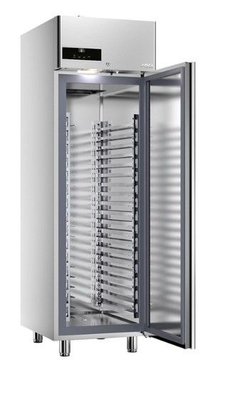 620x800x2040мм, 0,17 кВт, 220В, -2...+8C, контроль отн. влажности в пределах 75%...90%, вент. (динамическое) охлаждение, для кондитерских изделий, 1 глухая дверь, общий объем 521 л. полезный объем 352 л., нерж.сталь, R290. Выносной агрегат. 20 пар направляющих из нерж . стали под противни EN60x40 (600*400мм)
