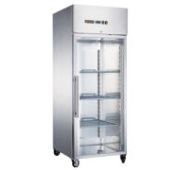 740х830х2010 мм, 230В, 0,215 кВт, 650 литров, +2...+8С, 1 стеклянная дверь, полки в комплекте 3хGN2/1, динамическое охлаждение, на колесах, нержавеющая сталь, замок, подсветка