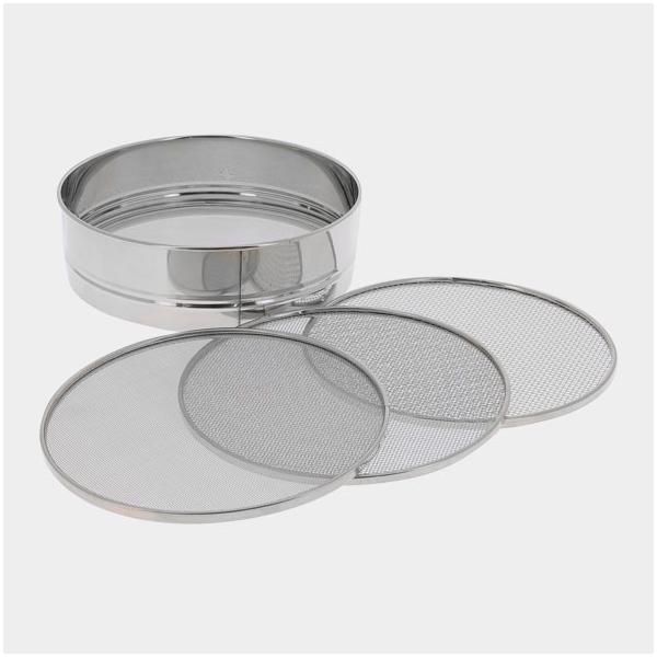 Сито d21см, с 4-мя съемными сетками, нерж.сталь, размеры ячеек в ситах: 0,5х0,5мм; 1х1мм; 2х2мм; 3х3мм.