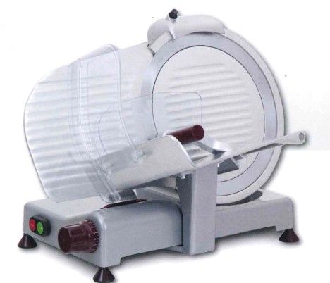 550х480х430 мм. Диаметр ножа 300 мм, рез 200 x 205 мм. Ход каретки 235мм. Профессиональный слайсер для нарезки мяса, сыра, колбасных изделий и других продуктов питания. Толщина нарезки 0-14/16 мм. Слайсер для профессионального использования на предприятиях общественного питания. Нож из хромированной стали, корпус из лакированного алюминия с пластиковыми деталями. Фиксированное заточное устройство. Система Easy Clean - легко откидываемая каретка позволяет очищать слайсер более удобным и быстрым способом. Версия DOM, спец. исполнение с красными ручками