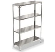 950х500х1800мм, Стеллаж, 4 сплошные полки из нержавеющей стали AISI 430 толщиной 0,5 мм с усилителем. Расстояние между полками регулируемое с шагом 50мм.. Каркас из уголка оцинкованной стали толщиной 1,5 мм. Распределенная статическая нагрузка на полку - 50 кг. Наличие подгибов по периметру полки исключает опасность травм.