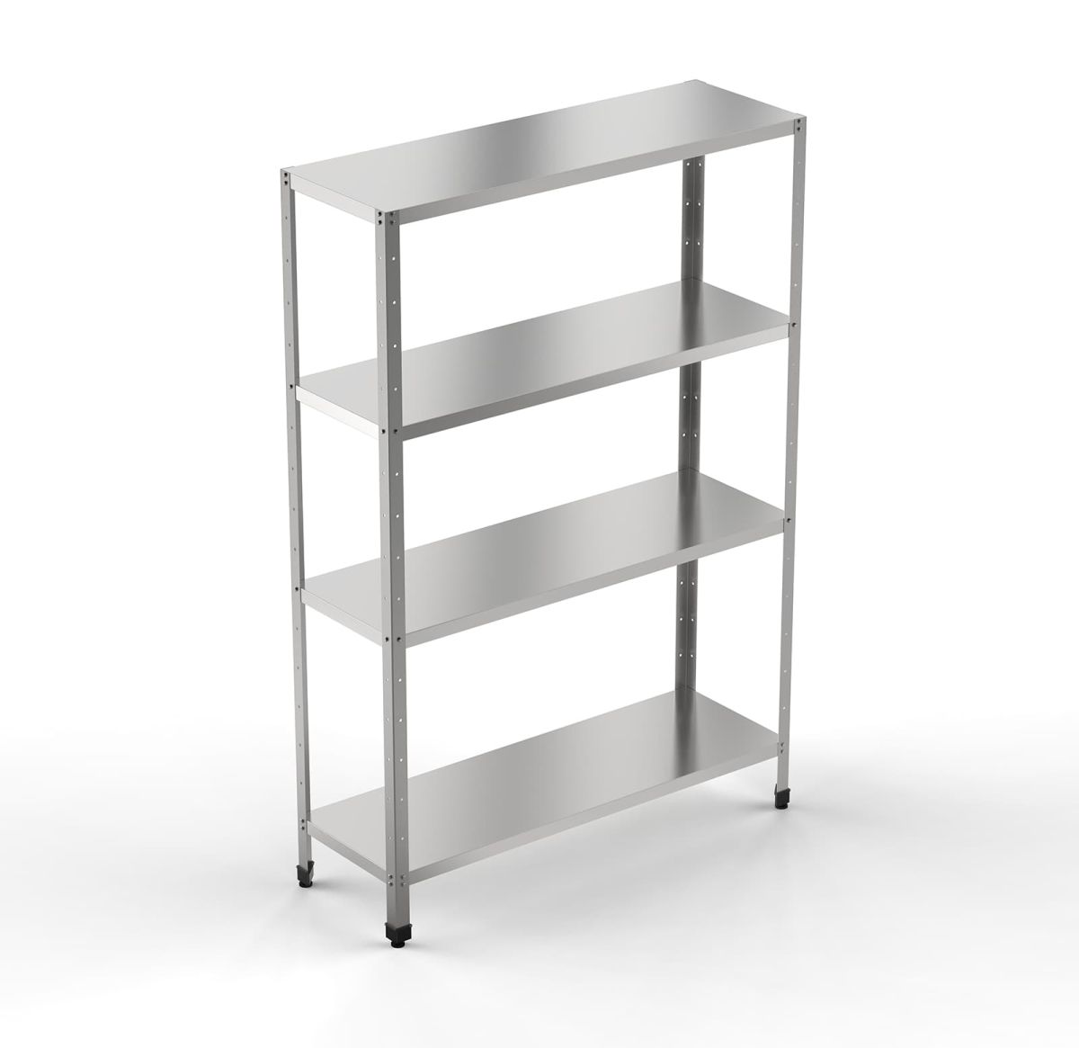 1000х600х1800мм, Стеллаж кухонный, серия "Стандарт" 4 сплошные полки выполненные из нерж. стали марки AISI 430, толщина 0,8 мм; каркас разборный - уголок из оцинкованной стали 1,5мм- толщиной.