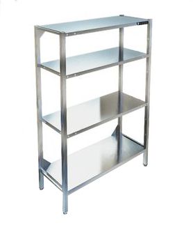 880х500х1850мм,каркас разборный, стойки труба 40х40 из нержавеющей стали AISI 430, полки сплошные из стали AISI 430Нагрузка на одну полку- 100 кг- равнораспределенная. Дополнительные укосины для жесткости конструкции