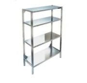 980х300х1850мм,каркас разборный, стойки труба 40х40 из нержавеющей стали AISI 430, полки сплошные из стали AISI 430Нагрузка на одну полку- 100 кг- равнораспределенная. Дополнительные укосины для жесткости конструкции