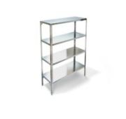 600х400х1830, каркас разборный, стойки из оцинкованного уголка 40х40 из, толщиной 1,5 мм, 4 полки сплошные из стали AISI 430, толщиной 0,8 ммНагрузка на одну полку- 100 кг- равнораспределенная. Дополнительные укосины для жесткости конструкции