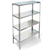 600х400х1830,каркас разборный, стойки из оцинкованного уголка 40х40 из, толщиной 1,5 мм, 4 перфорированные полки из стали AISI 430, толщиной 0,8 мм, , 0,05V, м3 Нагрузка на одну полку- 70 кг- равнораспределенная. Дополнительные укосины для жесткости конструкции