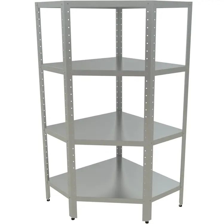 1000х1000х1600мм, Стеллаж кухонный угловой разборный (4 сплошные полки - нерж. сталь. aisi 430, каркас уголок оцинк. сталь)