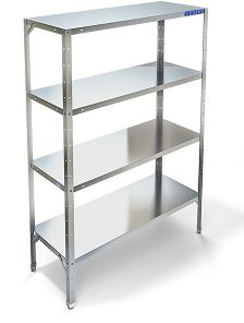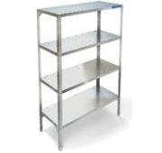 1700х600х1820мм, Стеллаж технологический разборный, стойки из уголка 40х40 нержавеющей стали марки AISI 430 толщиной 2мм. Четыре сплошные полки из нержавеющей стали марки AISI 304 толщиной 0,8мм. Расстояние между полками регулируемое с шагом 50мм. Регулируемые опоры. Стеллаж поставляется в разобранном виде.