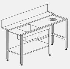 1500х730х850 мм, бортик, полка, ванна 500*400*300, отверстие д/отходов, левостронний