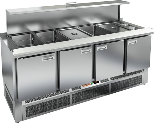 1970х700х850мм, SLE3-1111GN ПОЛИПРОПИЛЕН С КРЫШКОЙ стол для салатов, охл. (+2+10), 4 двери, 1970х700х850мм, ниж.распол.агрегата