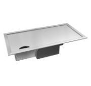 1500х600x850, каркас сварной из нержавеющей стали AISI 430, толщиной 0,8 мм, полка нерж 430, задняя стенка оцинкованнаая 0,5 мм, 2 двери-купе, борт плоский, рабочая поверхность из стали марки AISI 430, толщиной 0,8 мм, ЛДСП 16 мм 0,77V, м3