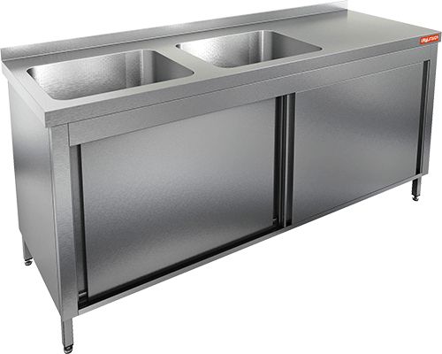 1600х700х850мм, НСЗК2М-16/7БЛ стол с ванной моеч. 2 секц. (500х400х250) слева, закрыт.,двери-купе