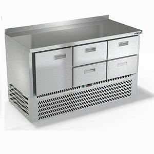 1485х700х850мм, Морозильный стол с бортом высотой 50мм, нижнее расположение агрегата. Столешница и корпус из нержавеющей стали марки AISI 430. Задняя панель и дно из оцинкованной стали. 1 дверь, 4 ящика гастронормированных нагрузка по 35кг, направляющие с доводчиками (Австрия). Температурный режим -10...-18, напряжение 220В, мощность 220Вт, внутренний объем стола 340л, полезный объем стола 148л. Компрессор (Испания). Хладон R404. Петля доводчик (Польша). Полка решетка регулируемая по высоте с шагом - 45мм, гастронормированная, нагрузка 35кг. Нога опорная, регулировка 25мм. Поставляется в собранном виде.