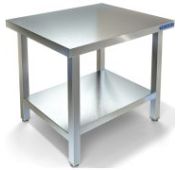 500х500х600мм, Стол-подставка под оборудование, столешница из нержавеющей стали марки AISI 304 толщиной 0,8мм, каркас разборный из трубы 40х40 нержавеющей стали марки AISI 304 толщиной 1,2мм, полка. Регулируемые опоры. Подставка поставляется в разобранном виде.