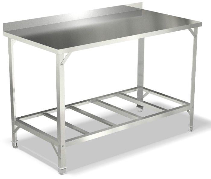 1200х700х850мм, Стол производственный с бортом высотой 40 мм, столешница из нержавеющей стали AISI 430 толщиной 0,5 мм с подложкой ДСП толщиной 16 мм. Каркас из оцинкованной стали толщиной 1,5 мм, полка-решетка из оцинкованной стали толщиной 0,8 мм. Полка стола выдерживает распределенную статическую нагрузку - 20 кг, столешница - 100 кг. Наличие подгибов по периметру столешницы и полки исключает опасность травм.
