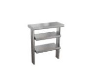 1600х600x850, каркас разборный, уголок из оцинкованного металла толщиной 1,5 мм, полка-решетка оцинковка, толщиной 0,8 мм, рабочая поверхность нержавеющая сталь AISI 430 толщиной 0,8 мм, усиление ЛДСП 16 мм, борт плоский, 0,23V, м3