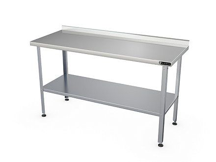 1100х600х870мм, нагрузка на столешницу 99кг, 1 борт, столешница нерж. сталь AISI430 0,8мм, подложка столешницы ДСП 16мм, каркас оцинк. сталь 1,2мм, уголок 40х40мм. Полка сплошная. Регулируемые ножки 20мм. Вес 18,9кг. Столешница стола изготовлена из легированной стали. Она укреплена с внутренней стороны листом древесно-стружечной плиты, что увеличивает прочность и исключает прогиб столешницы. Стойки стола выполнены в виде уголка. Стол имеет сплошную полку. Ножки имеют пластиковую опорную часть и регулируются по высоте. Изделие разборное и поставляется в удобной упаковке, что облегчает транспортировку и хранение.