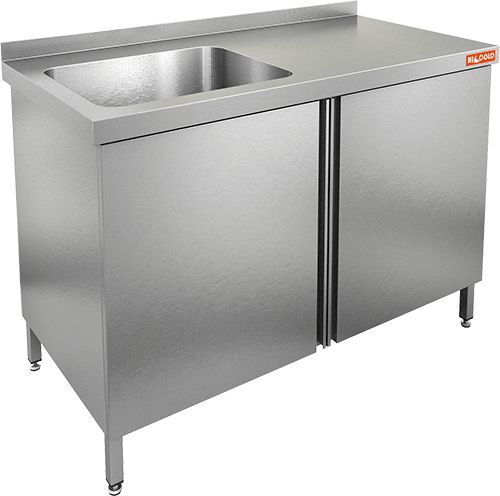1400х600х850мм, НСЗ1М-14/6БЛ стол с ванной моеч. 1 секц. (500х400х250) слева, закрыт., распаш двери