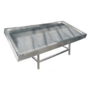 1100х1100х1030мм, Стол для выкладки рыбы на льду без агрегата, ванна из нержавеющей стали марки AISI 304 толщиной 1мм. Панели обшивки из нержавеющей стали марки AISI 430 толщиной 0,8мм. Сливные трубки диаметром 20 мм 2шт. Внутри ванны перфорированный поддон из нержавеющей стали марки AISI 430 толщиной 0,8мм для аккумулирования холода. Подставка разборная из трубы 40х40 нержавеющей стали марки AISI 304 толщиной 1,2мм. Фартук с 3-х сторон. Регулируемые опоры. Стол поставляется в разобранном виде.