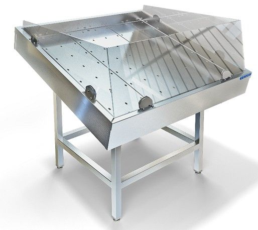 2000х1500х1030мм, Стол для выкладки рыбы на льду с агрегатом, ванна из нержавеющей стали марки AISI 304 толщиной 1,0 мм. Панели обшивки из нержавеющей стали марки AISI 430 толщиной 0,8мм. Сливные трубки диаметром 20 мм 2шт. Внутри ванны перфорированный поддон из нержавеющей стали марки AISI 430 толщиной 0,8мм для аккумулирования холода. Подставка сварная из трубы 40х40 нержавеющей стали марки AISI 304. Регулируемые опоры. Агрегат Danfoss, мощность 550 Вт. Стекло с 3-х сторон. Стол поставляется в собранном виде.