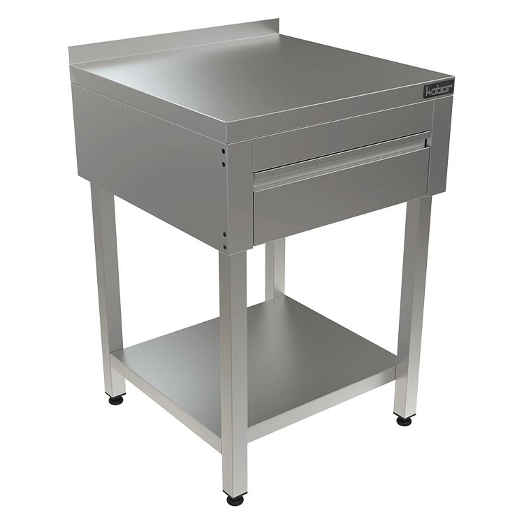600х600х870мм, Стол с выдвижными ящиками (столешница – нерж. сталь aisi 430, борт, выдвижные ящики под столешницей, усиление ЛДСП, каркас нерж. труба 40х40, полка, разборный)