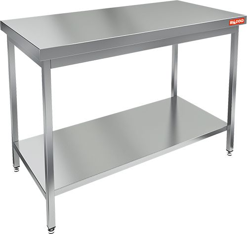 1400х700х850мм; н.ст.430; полка, замена столешницы на усиленную (нерж. сталь 1 мм, усиленная рёбрами жёсткости)
